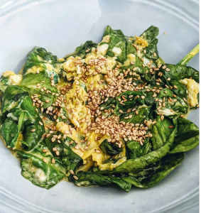 Épinards frais aux œufs brouillés ~ Bleu ~ Sésame 👌🍃